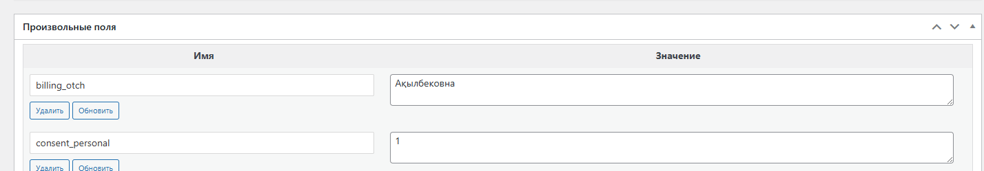 Изменяем на верные данные и нажимаем справа "Обновить".