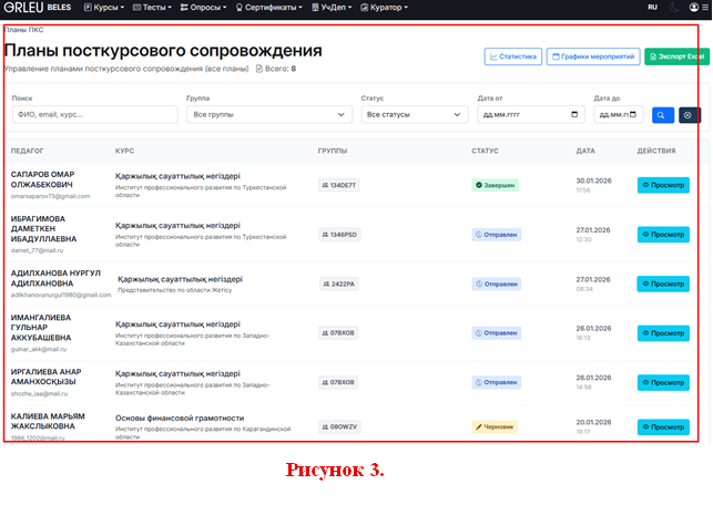 4. Перед куратором откроется План посткурсового сопровождения со списком педагогов, закреплённых за ним (см. рисунок 3).
