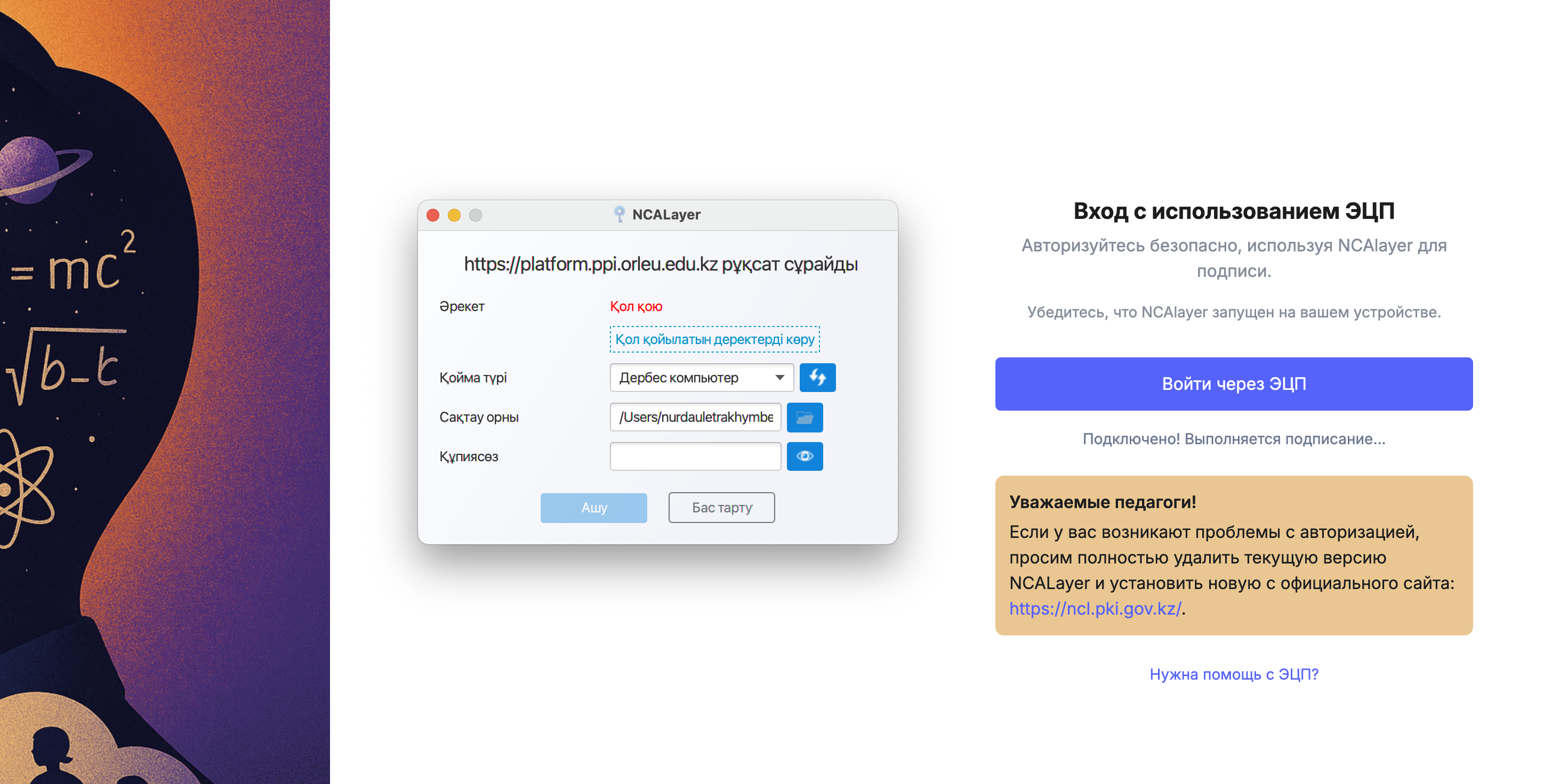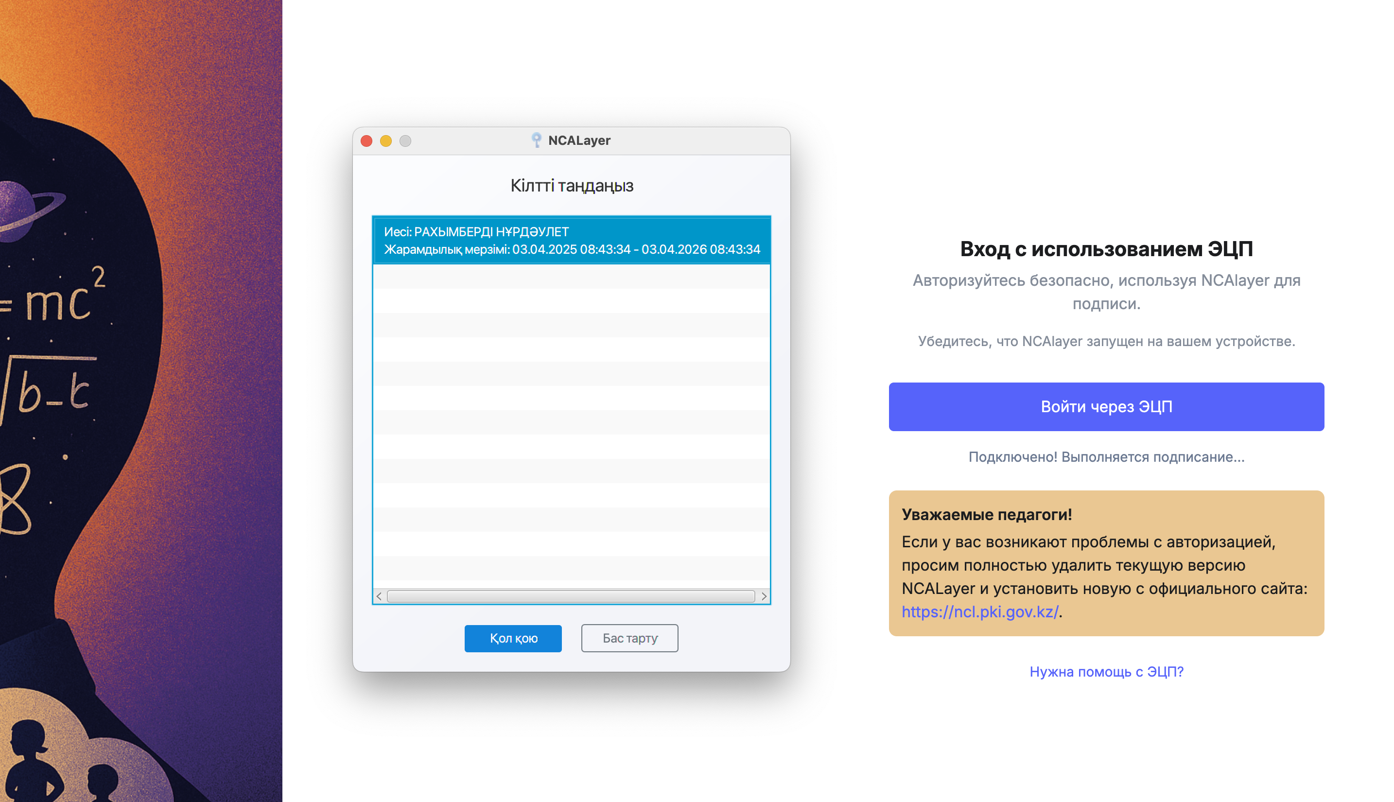 - Убедитесь, что приложение NCALayer запущено на вашем компьютере.