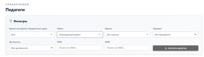 • Сүзгілерді пайдалану. Жылдам іздеу үшін кестенің үстіндегі сүзгілеу блогын пайдаланыңыз. Мәліметтерді аудандар, нақты мектептер, лауазымдар немесе курстан өту уақыты бойынша сұрыптай аласыз.