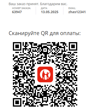 Через QR приложения каспи можно оплатить. "Номер заказа" это ваш индивидуальный номер.