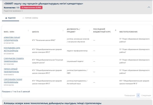 • Нәтижені тексеру. Облыс өтінімді өңдеп болғаннан кейін, оны «Қарау» арқылы ашыңыз. Жүйелік хабарландыруларға назар аударыңыз: бағдарлама ұсынылған педагогтер саны сіздің квотаңызға сәйкес келетінін немесе жетіспеушілік бар-жоғын көрсетіп тұрады.