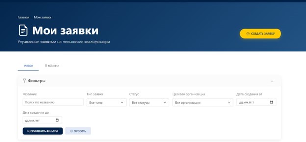 • Өтінімдер тізімін басқару. «Менің өтінімдерім» (Мои заявки) бөліміне өтіңіз. Бұл барлық өтінімдер тарихы көрсетілетін негізгі жұмыс орны. Қажетті құжатты атауы, түрі (атаулы/сандық), ағымдағы мәртебесі немесе құрылған күні бойынша жылдам табу үшін жоғарғы жағындағы сүзгілеу панелін пайдаланыңыз.